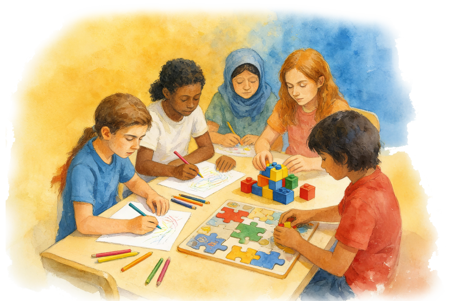 Gemeinsam wird gemalt, gespielt, entdeckt und gelernt – in einer Atmosphäre voller Freude, Neugier und Gemeinschaft.